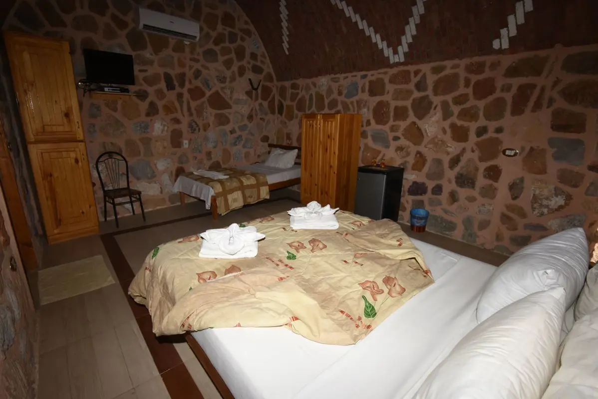 BOUTIQUE VILLA At the very pinnacle of the resort there is the original owner's villa which has been converted to provide three Boutique Rooms with a communal lounge and sea view balcony. The villa is ideal for families and small groups but is also available on a room-by-room basis. The constructed is completely in local red stone with an ornamental brick roof. These rooms offer the same specification as the Deluxe Chalets with separate large en-suite facilities and generally a larger floor area. The villa offers 3 rooms: - 401 is a large single 402 is provided with twin beds 403 is provided with king size bed Each of the rooms is fitted with independent modern split unit air conditioning, keypad room safe and a smoke alarm. In the communal lounge area, there is a LED satellite TV with 20 European channels, a fridge and a work desk. The rooms are supplied with clean bed linen and 2 room towels and a beach towels per person.
